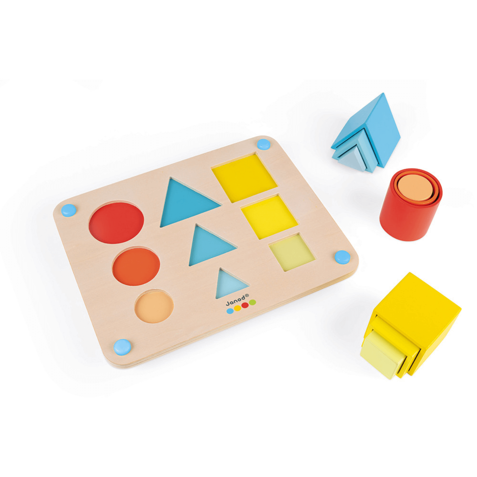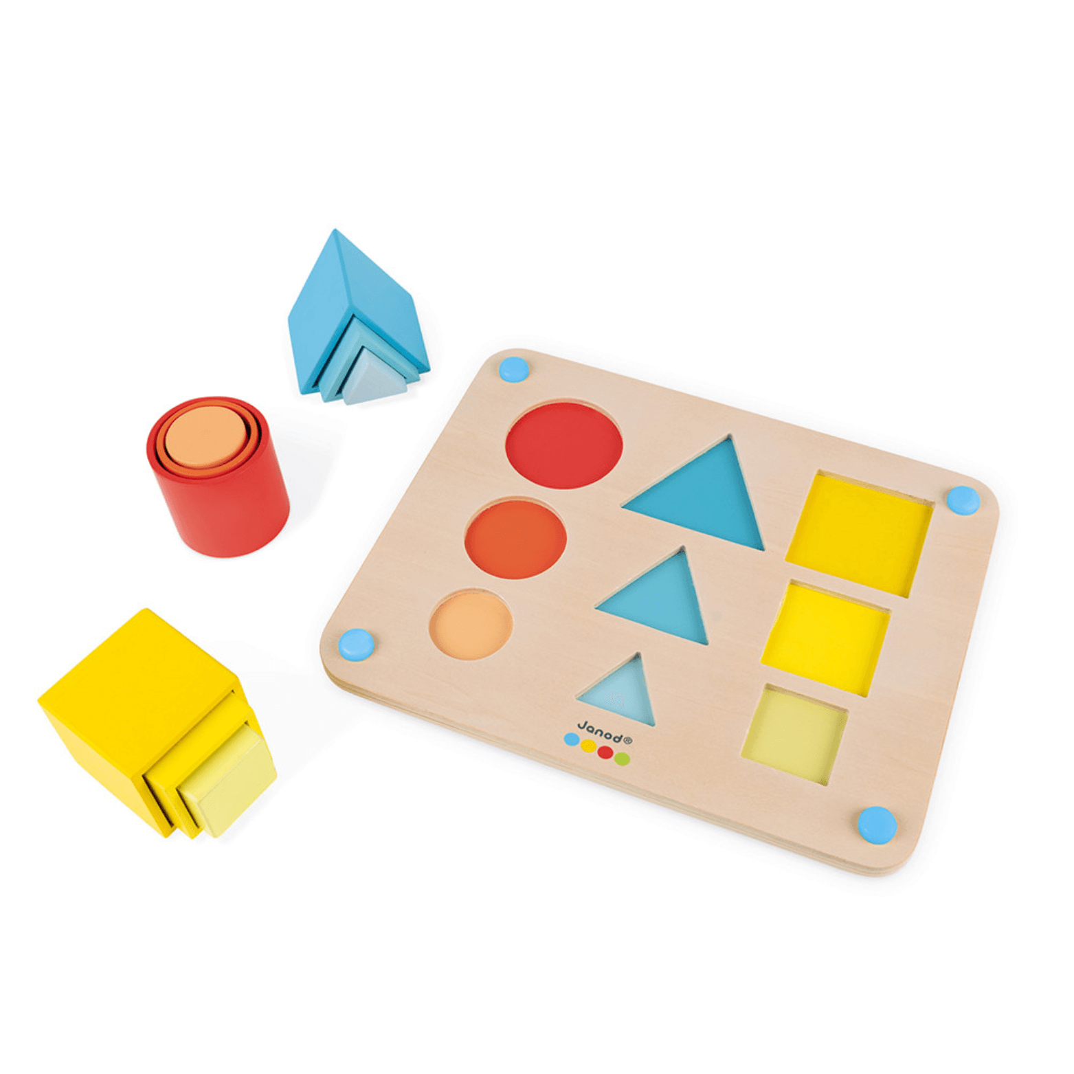 Con 3 formas de jugar: ¡incrustar, apilar o anidar! Con su diseño inteligente, la plataforma lleva pies de silicona antideslizantes para mayor estabilidad.