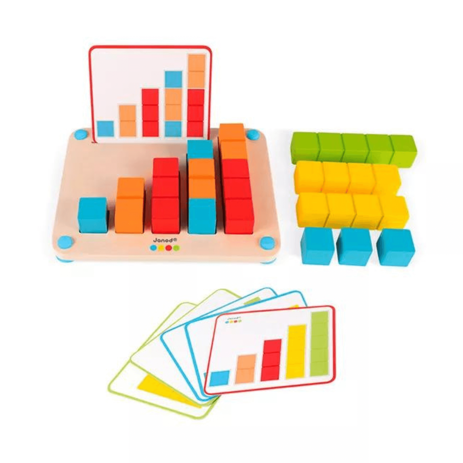 Con 12 modelos y 14 barras graduadas de diferentes colores y tamaños, el/la niñ@ podrá jugar de 2 formas distintas.