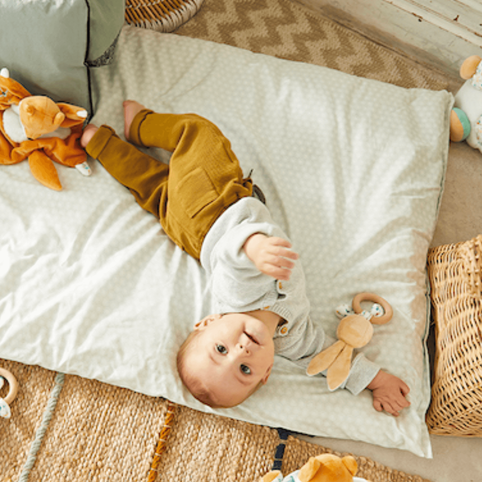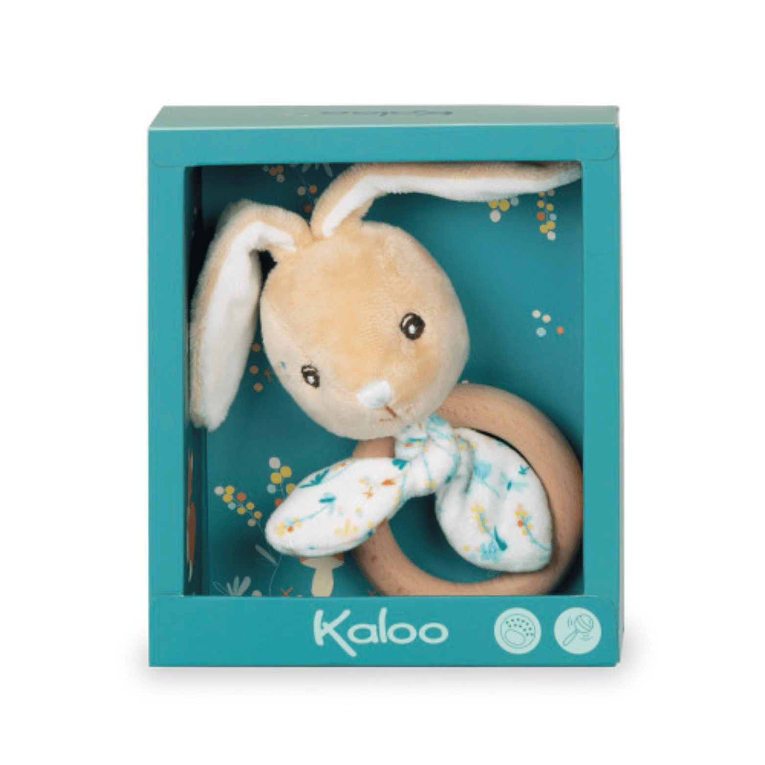 Justin, el conejito de actividades súper suave, incluye un anillo mordedor de madera lisa para aliviar el dolor de los dientes que le están saliendo al bebé. También tiene un sonajero para estimular al bebé y desarrollar sus sentidos.