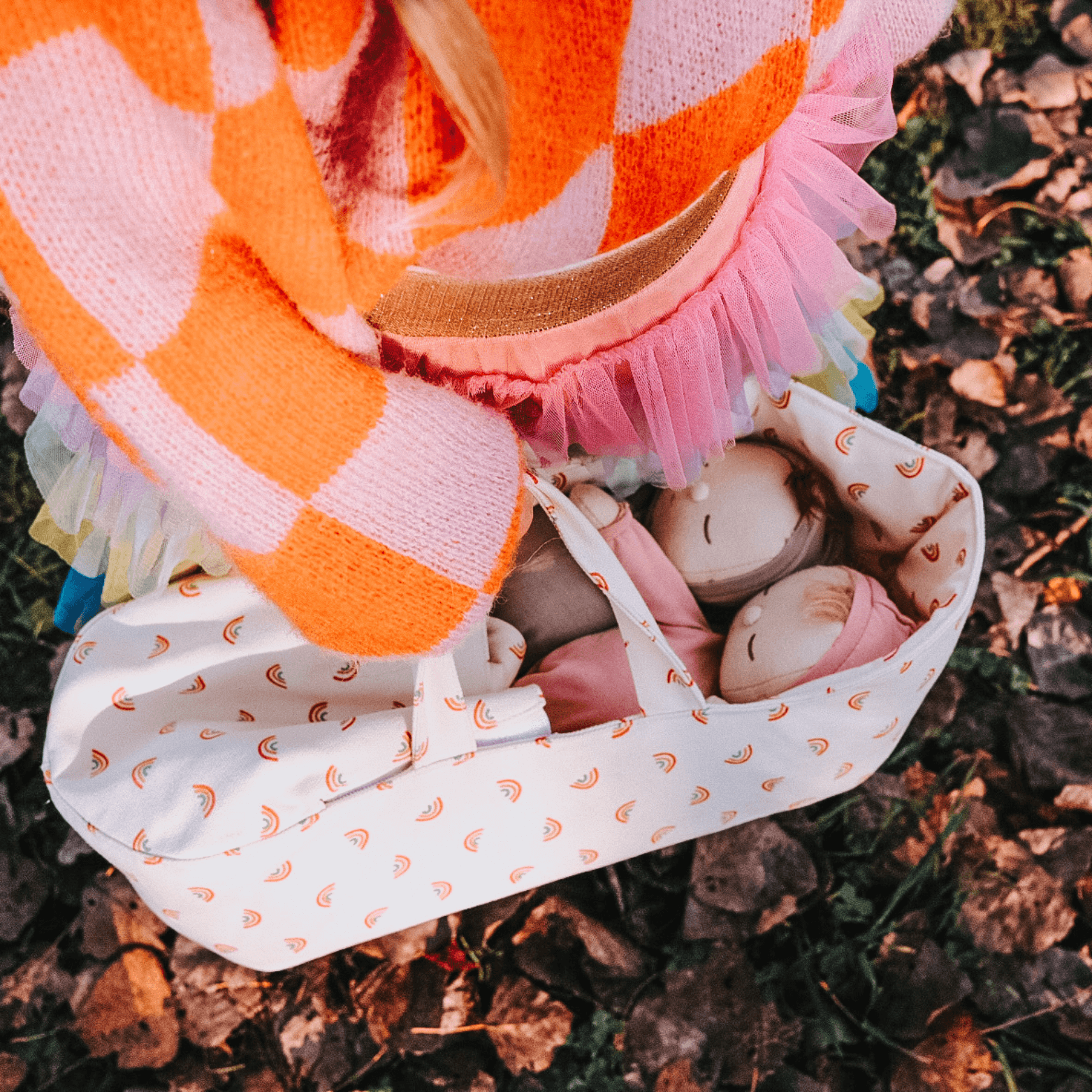 La cuna mini con arcoíris es el accesorio perfecto para que tus peques arropen a sus preciad@s bebés y transporten a sus adorables amig@s.